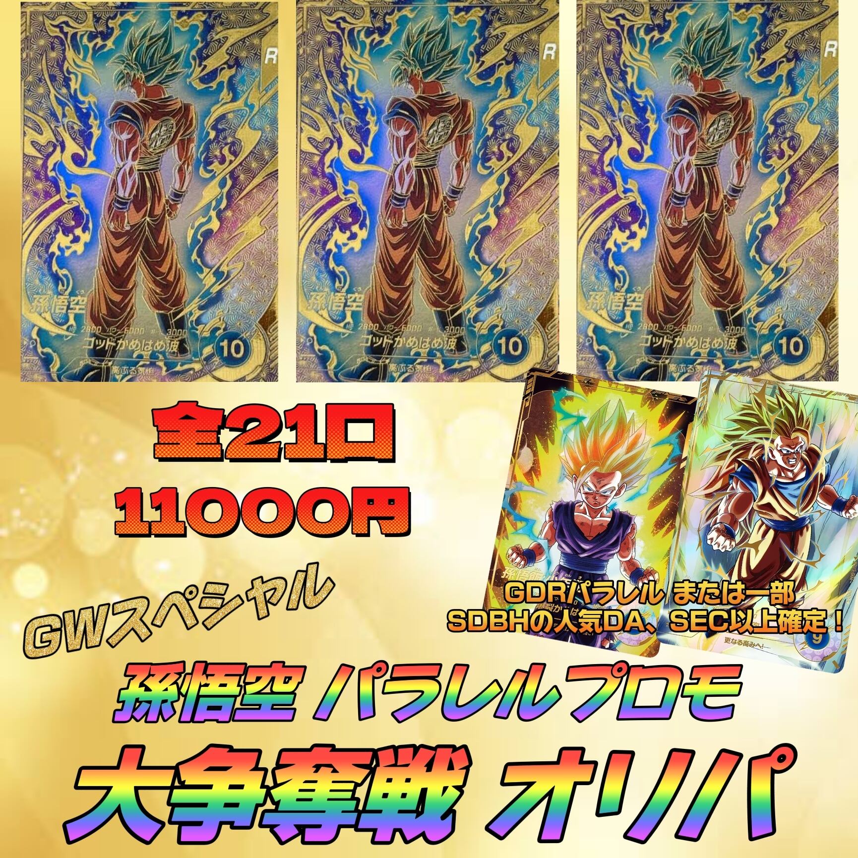高レートのドラゴンボールヒーローズまたはダイバーズ GDRパラレル(1枚〜2枚) 確定!
