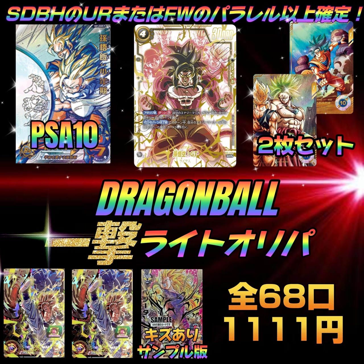 ハズレ枠はドラゴンボールヒーローズ一部キズあり含むUR以上またはFWのパラレル確定!